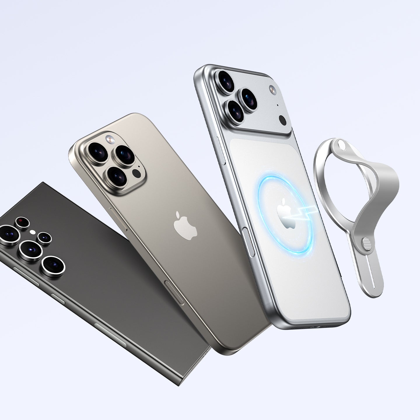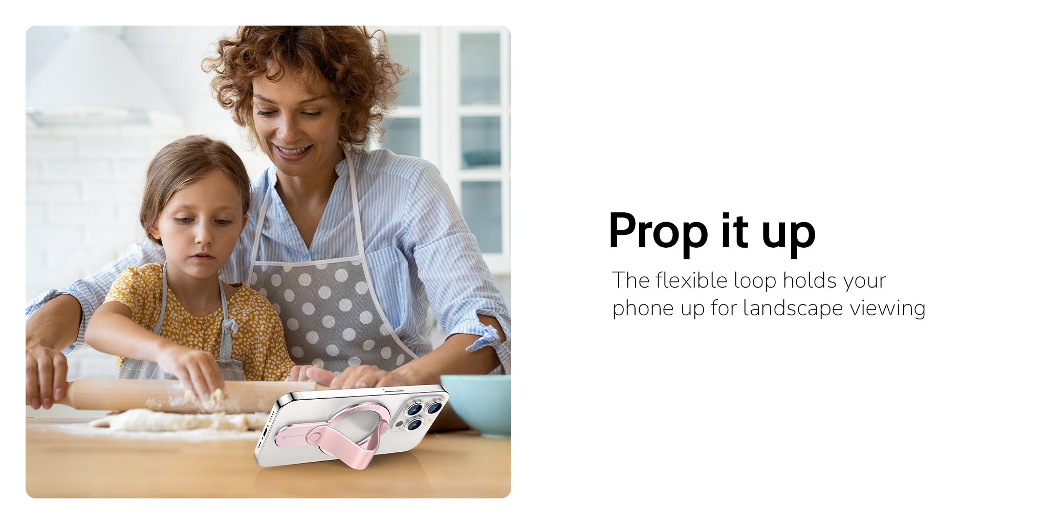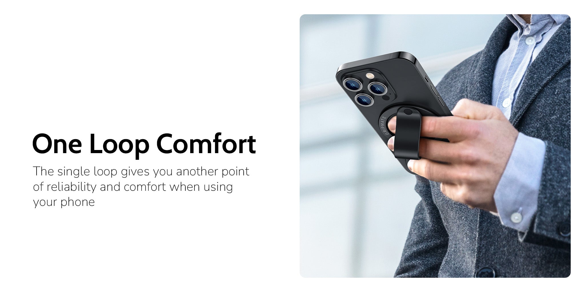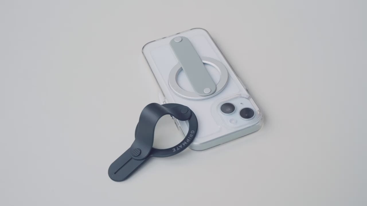 GripMate 1 has built-in magnets for automatically aligning and attaching to your MagSafe or PixelSnap compatible phone or a phone case with magnetic ring functionality.